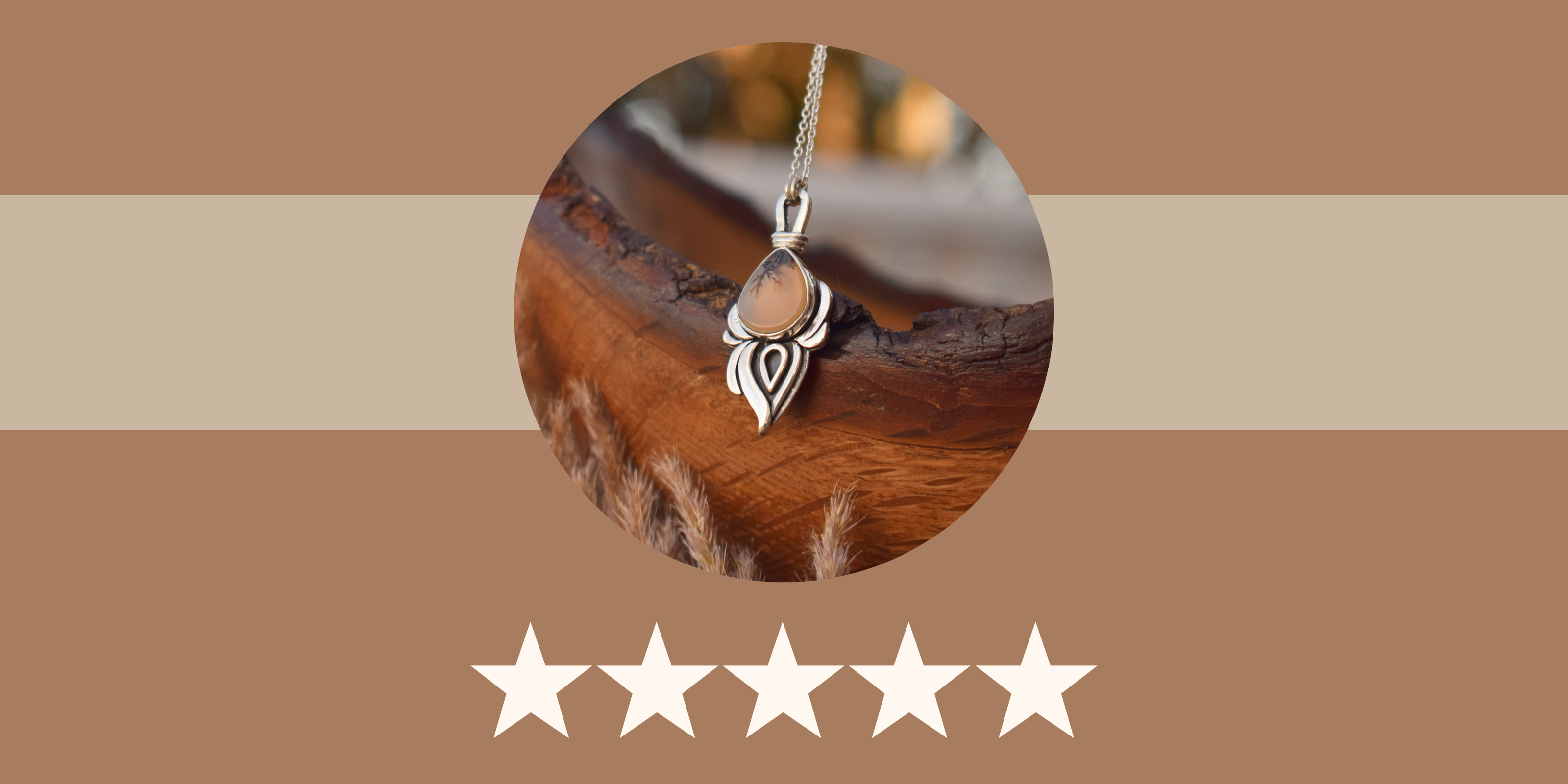 GittaI absolutely adore my Elderwood necklace with the dendritic agate. Very calming and grounding. It came in a gorgeous box with a tea light and a smoky quartz crystal