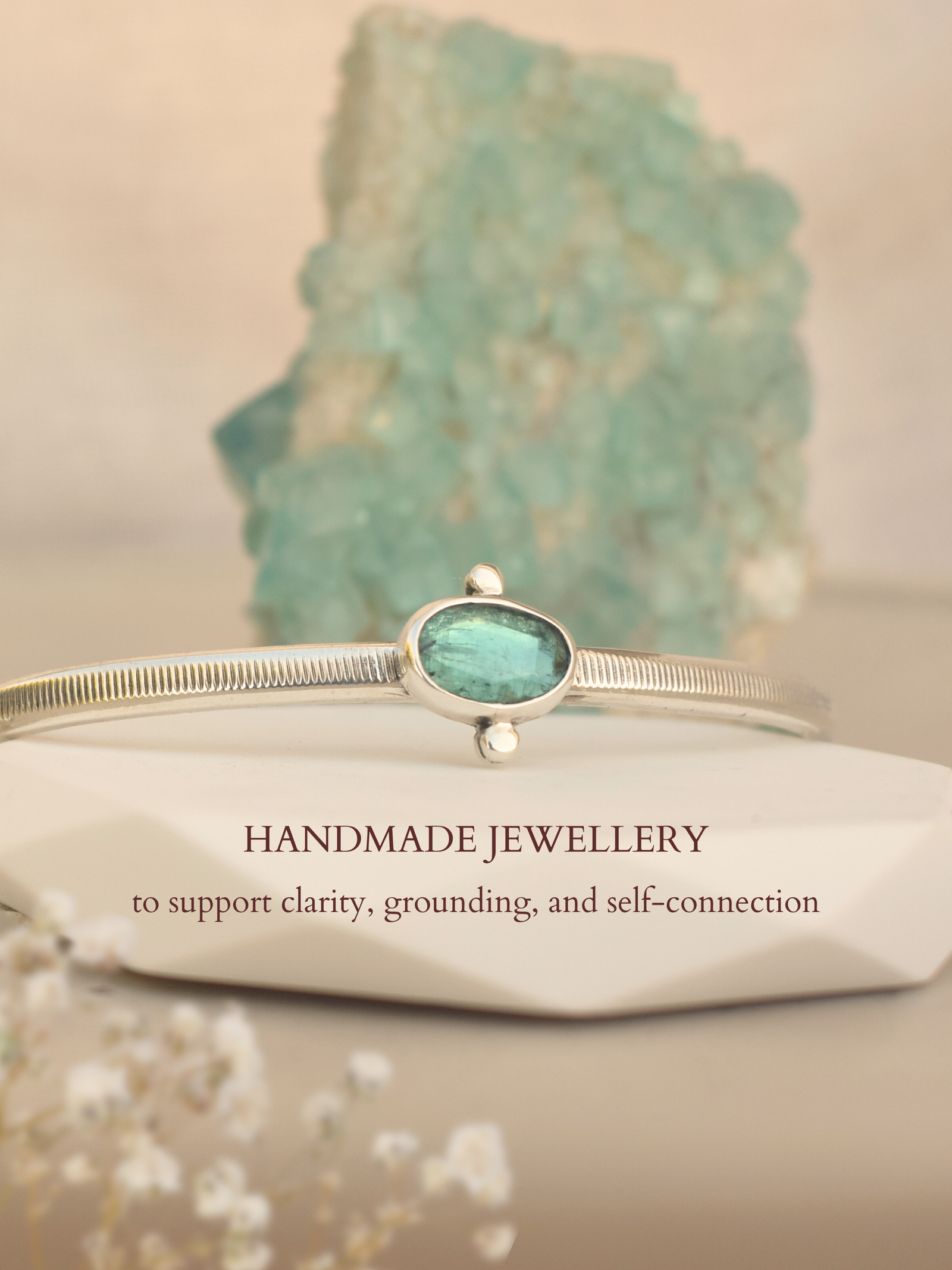 Beyond Earth creates handmade jewellery designed to quietly support your clarity, grounding, and inner alignment. Every piece is crafted with care and intention, serving as a companion on your personal journey. I design and shape each piece by hand, letting the gemstones and silver guide the process, so that the jewellery can hold space for your moments of pause, reflection, and presence.