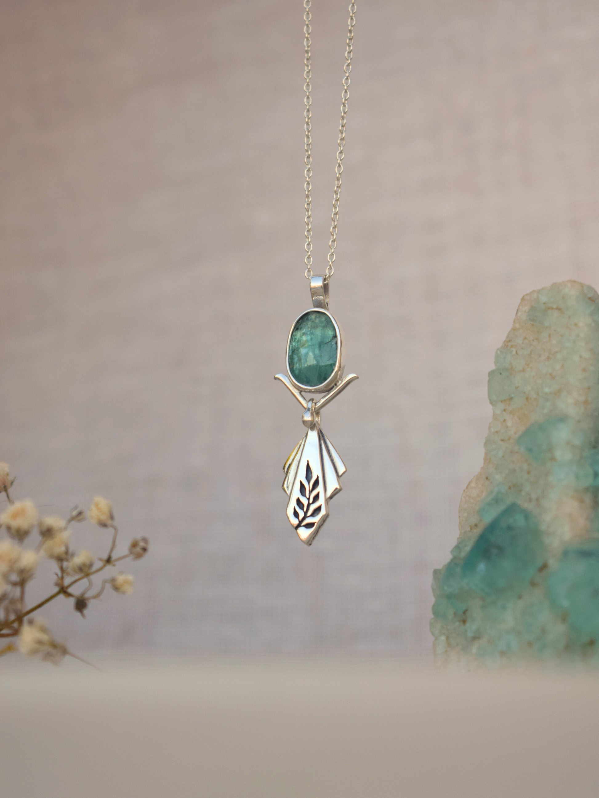 Lyra invites you to attune to the quiet rhythm beneath it all. The emerald green Kyanite encourages clarity, balance, and alignment, serving as a talisman to help you recognize the subtle threads of guidance in your life—even in moments of uncertainty.