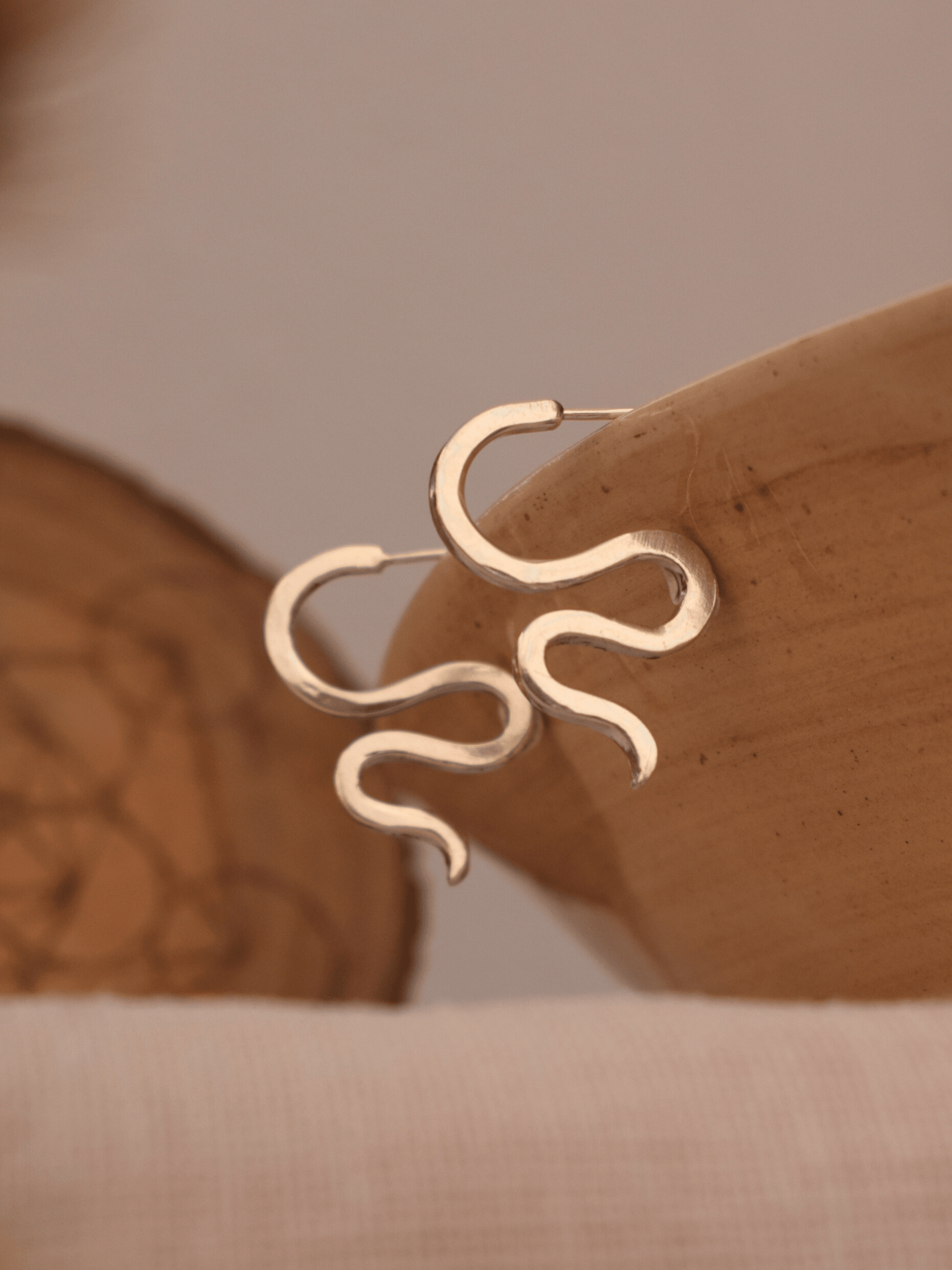 The Sira Earrings are a quiet evolution—grounded hoops that gently shift into soft, flowing shapes. Handcrafted in thick sterling silver, they carry the energy of momentum, reminding you that even the smallest movement can shift everything.