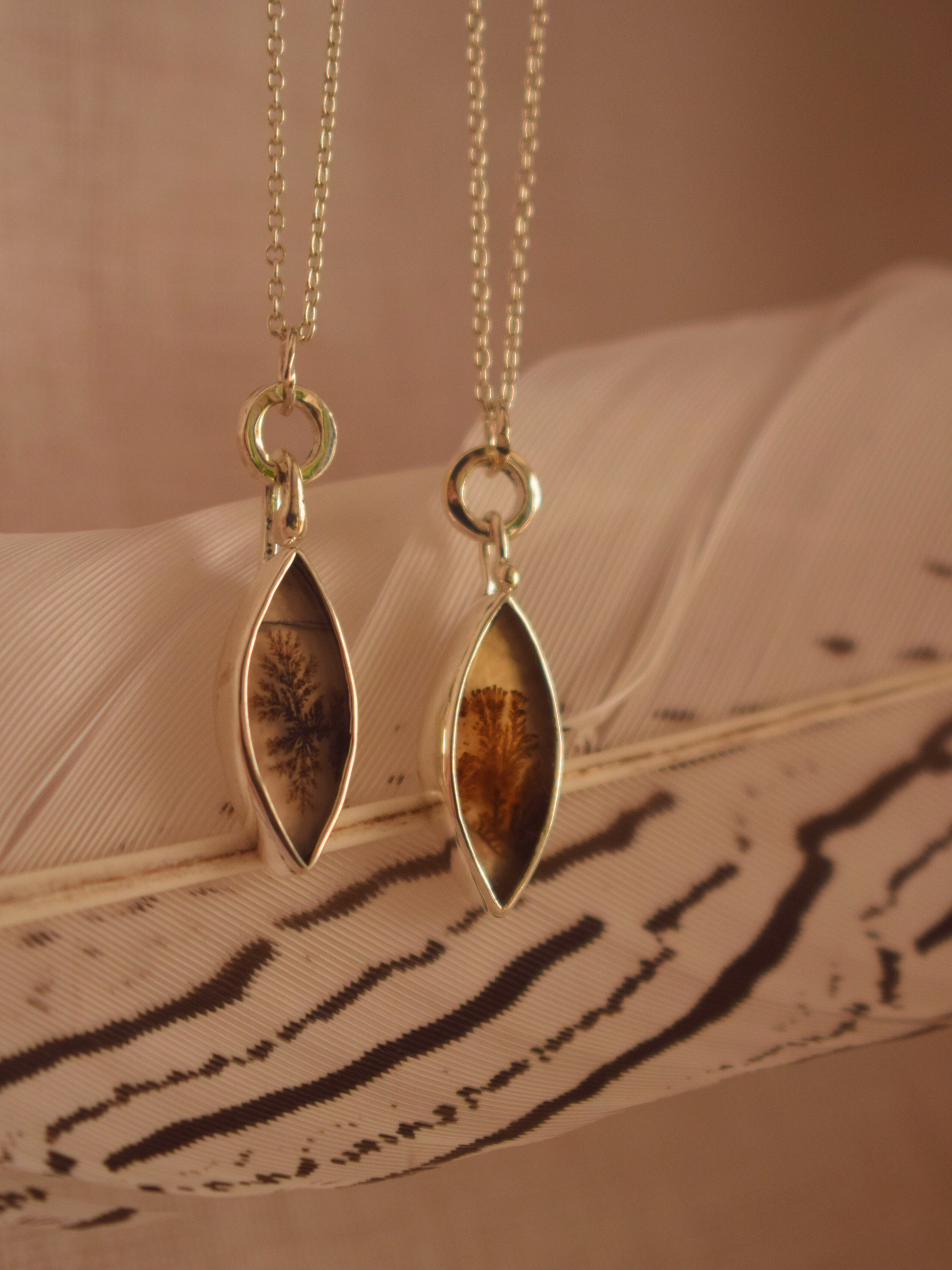 The Sol Seed Necklace honors your inner potential. Handcrafted in sterling silver and set with Dendritic Agate, it reflects the steady wisdom of nature and the subtle growth always unfolding within you. Each pendant’s branch-like patterns echo the quiet expansion of your own energy, encouraging you to trust your rhythm and stay rooted as you reach for the light.