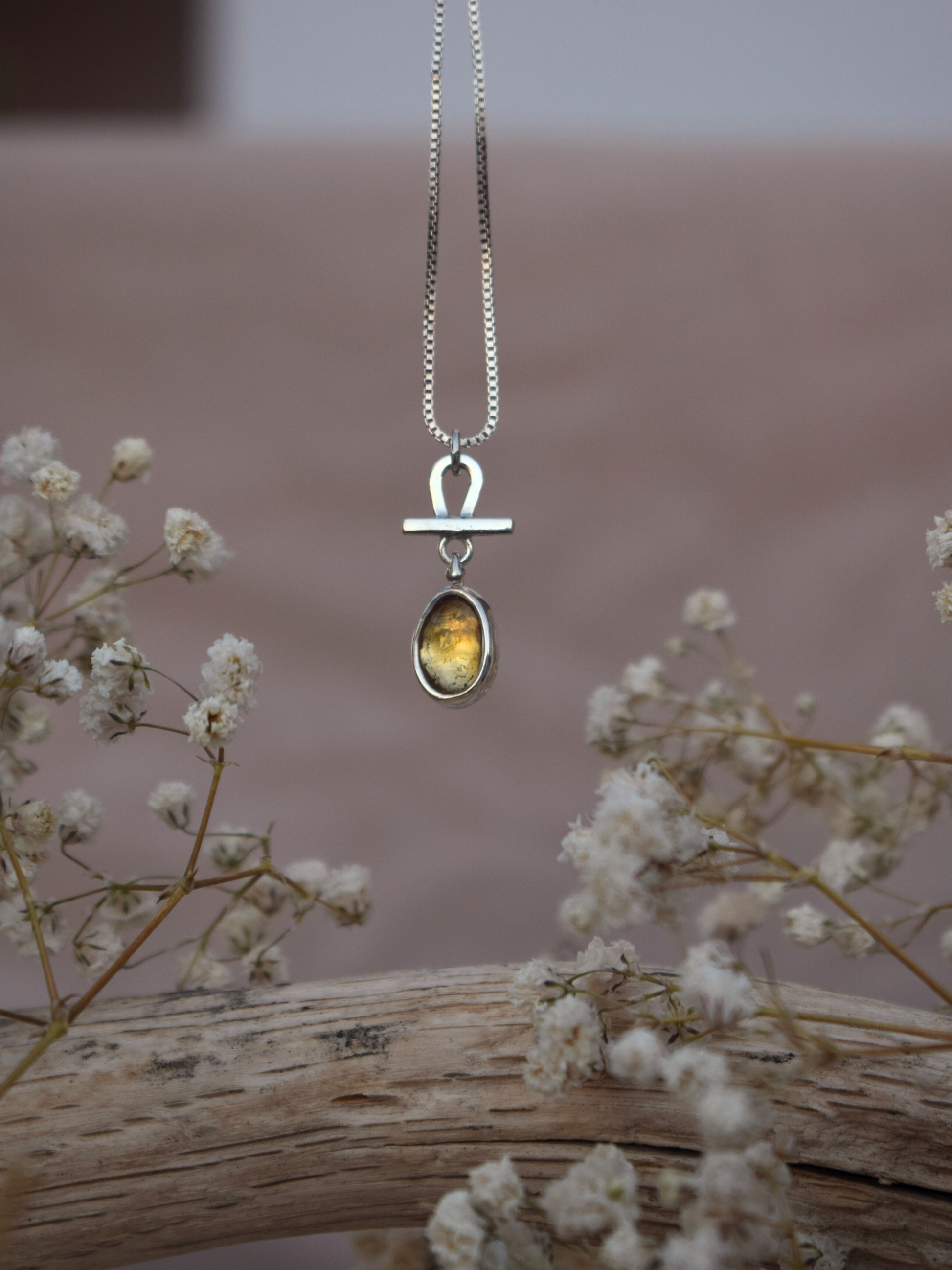 The Vita Pendant is a smaller, intimate companion to the Key of Life, designed to be worn close to your heart every day. Handcrafted in sterling silver and set with Citrine, it carries the energy of joy, abundance, and personal power—reminding you that the ability to live fully has always been within you.